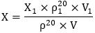 Объемную долю этилового спирта в косметической жидкости X, %, вычисляют по формуле