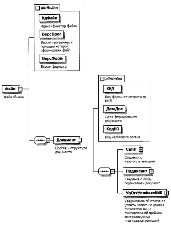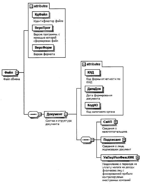 XML схема файла обмена приводится отдельным файлом и размещается на официальном сайте Федеральной налоговой службы в информационной- телекоммуникационной сети "Интернет".