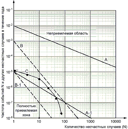 Шкала вероятности должна быть адаптирована к ситуации; может потребоваться охват разных диапазонов для положительных или отрицательных последствий. Самый низкий уровень шкалы вероятности, который должен использоваться с отрицательными последствиями, должен отражать приемлемую вероятность для наибольшего определенного последствия (в противном случае все события с самым высоким уровнем последствий определяются как недопустимые и не могут стать допустимыми). При принятии решения о приемлемой вероятности для конкретного риска с высоким уровнем последствий следует учитывать тот факт, что несколько других рисков могут приводить к таким же последствиям.