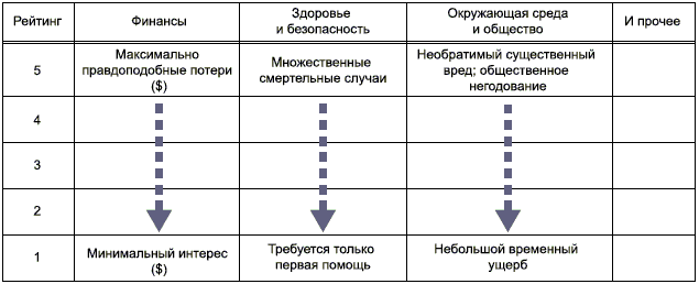 2 Можно использовать большее или меньшее количество категории последствий, и в зависимости от области применения шкала может иметь меньше или больше пяти уровней. Значения рейтинга шкалы оценки последствий могут быть указаны словами, цифрами или буквами.