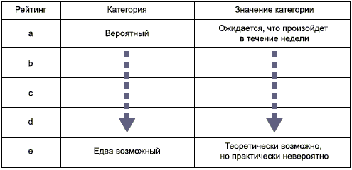 Примечание - Шкала рейтинга вероятности может иметь более или менее пяти уровней, а значения рейтинга могут быть указаны в виде слов или букв.