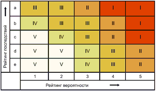 Матрица последствий/вероятности (также называемая матрицей рисков или тепловой картой) представляет собой способ отображения рисков в соответствии с их последствиями и вероятностью и объединения этих характеристик для отображения рейтинга значимости риска.