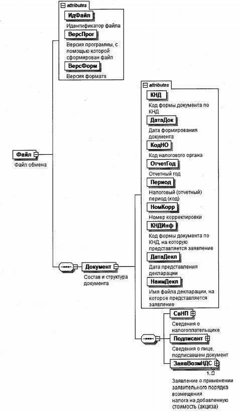 | Заявление о применении заявительного порядка возмещения налога на добавленную стоимость (акциза) | ЗаявВозмНДС | С | ОМ | Состав элемента представлен в таблице 4.7 |