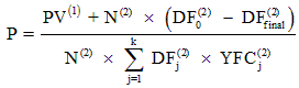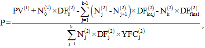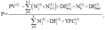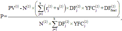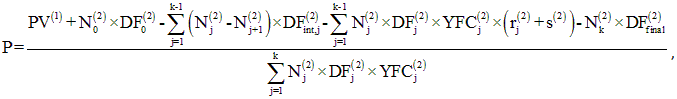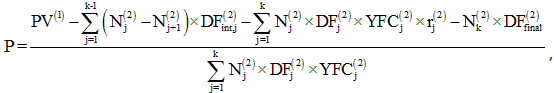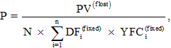 P - расчетная цена (фиксированная ставка процента) своп-договора (контракта) (в долях единицы);