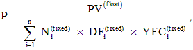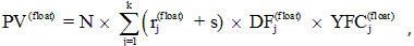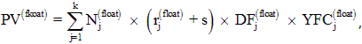 - дисконтированная стоимость платежей по плавающей ставке процента, которая рассчитывается по следующей формуле: