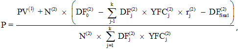 если условия своп-договора (контракта) предусматривают уплату денежных сумм, рассчитанных исходя из номинальной суммы, выраженной во второй валюте, и фиксированной ставки процента (в долях единицы) во второй валюте, где P - расчетная цена в виде фиксированной ставки процента по второй валюте своп-договора (контракта); или