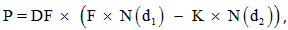 DF - дисконтный фактор по валюте, в которой устанавливается цена исполнения опционного договора (контракта), определяемый в соответствии с подпунктом 4.1.2 настоящего пункта;