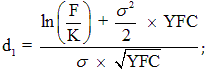 YFC - срок опционного договора (контракта) в годах, рассчитанный по финансовой базе валюты, в которой устанавливается цена исполнения опционного договора (контракта);