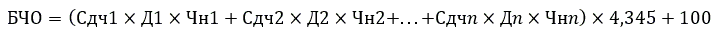 БЧс = ДО x (1 + Ко + Кк + Кн + Ку) + Кв,