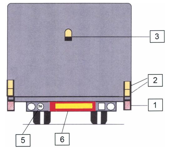 при ширине транспортного средства до 3,5 м (включительно) 1 сзади и 1 спереди (при длине транспортного средства от 25 м до 40 м (включительно)) или 1 сзади, 2 спереди (при длине транспортного средства свыше 40 м);