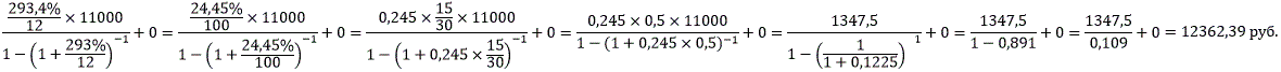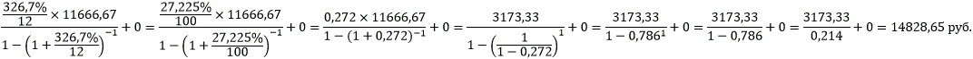 Обращаем внимание, что ПСК в формуле расчета среднемесячного платежа, указана в процентах. Для целей проведения арифметических расчетов значение ПСК может быть указано в процентах годовых, т.е. с указанием знака "%" (в приведенном примере - 326,7%), либо переведено в десятичную дробь: убрать знак "%" (326,7) и разделить значение на 100 (3,267).