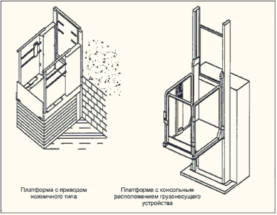 Рисунок 1 - Примеры вертикальных подъемных платформ с неогражденной шахтой