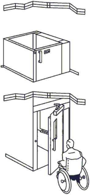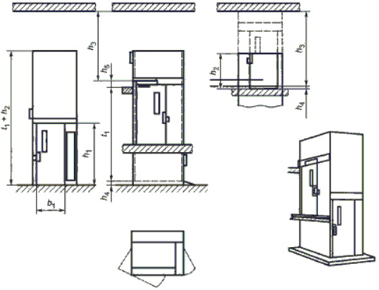 - грузонесущее устройство платформы расположено в частично огражденной шахте или в неогражденной шахте (при высоте подъема не более 3 м). Примеры платформ с частично огражденной шахтой показаны на рисунке 1. Возможно иное исполнение платформ;