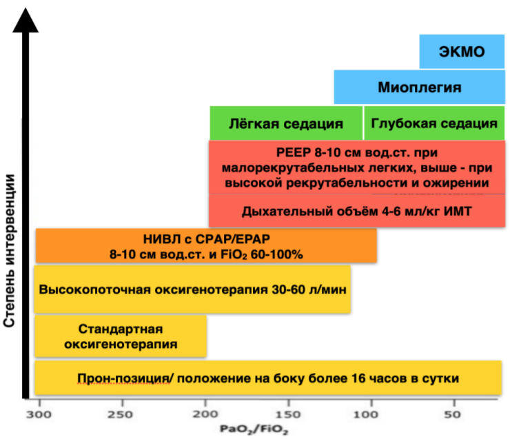 Гипоксемия (SpO2 < 88%) развивается более чем у 30% пациентов.
