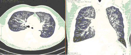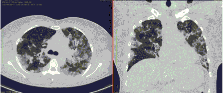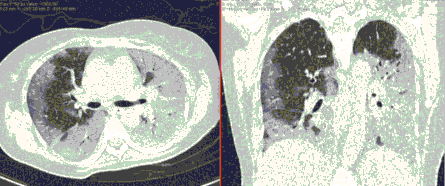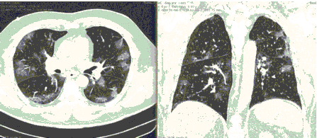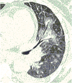 - Изменения при КТ (рентгенографии), типичные для вирусного поражения