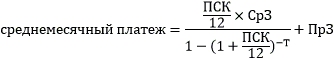 среднемесячный платеж = max (5% x (ПЛ + ПрЗ); ПрЗ) или