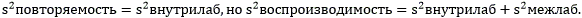 1 Значения стандартного отклонения сходимости и внутрилабораторного стандартного отклонения являются идентичными. Однако значение стандартного отклонения воспроизводимости не является идентичным значению межлабораторного стандартного отклонения. Значение стандартного отклонения воспроизводимости есть сумма значений межлабораторного и внутрилабораторного стандартных отклонений, а именно: