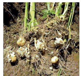 У основания стебля, а также на столонах и клубнях образуются наросты, напоминающие цветную капусту. Эти наросты имеют зеленый цвет над землей и молочный цвет под землей. По мере отмирания растения эти наросты увядают и становятся черными (рисунки Д.1.11, Д.1.2).