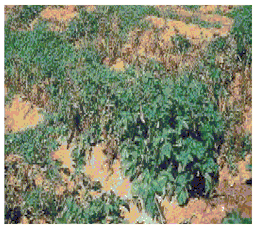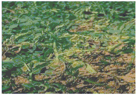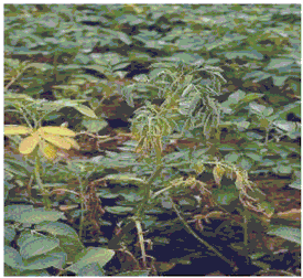 На растении наблюдается увядание наиболее молодых листочков особенно в самые жаркие часы дня (рисунок Д.1.3); может создаваться впечатление, что ночью растения восстанавливаются. В районах с прохладным климатом увядание происходит не всегда.