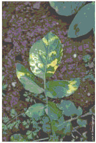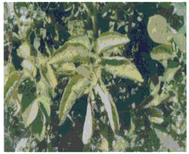 Симптомы тяжелой мозаики сопровождаются деформированием листьев и/или увяданием растения. В особо острых случаях возможен некроз (полосчатая мозаика) и опадание листьев (рисунок Д.2.3, рисунок Д.2.4).