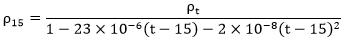 При использовании ареометра, калиброванного при температуре, отличающейся от 15 °C, его показания корректируют так, чтобы они соответствовали показаниям ареометра, калиброванного при температуре 15 °C, по формуле