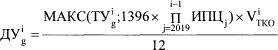 "18.1. При определении тарифа на энергетическую утилизацию для регулируемой организации, в отношении объектов которой в соответствии с пунктом 263 Правил оптового рынка электрической энергии и мощности заключены договоры о предоставлении мощности квалифицированных генерирующих объектов, функционирующих на основе использования возобновляемых источников энергии, тариф на энергетическую утилизацию устанавливается на уровне значения полученного путем индексации базового уровня тарифа на энергетическую утилизацию в размере 1396 рублей за тонну, определенного в ценах базового 2019 года, по формуле: