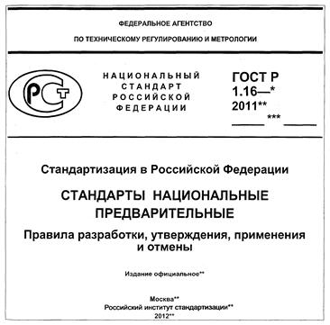ГОСТ Р 1.16-2011 Стандартизация в Российской Федерации. Стандарты национальные предварительные. Правила разработки, утверждения, применения и отмены