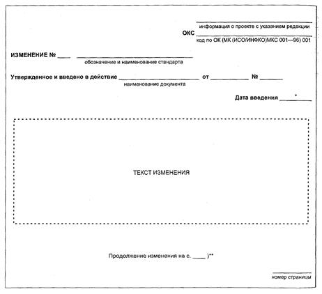 <*> Эти слова не приводят при оформлении проекта изменения к стандарту, а также в случае, когда изменение заканчивается на данной странице. В последнем случае после текста изменения в скобках приводят аббревиатуру, номер и год издания информационного указателя стандартов (ИУС N ______), в котором опубликовано это изменение.