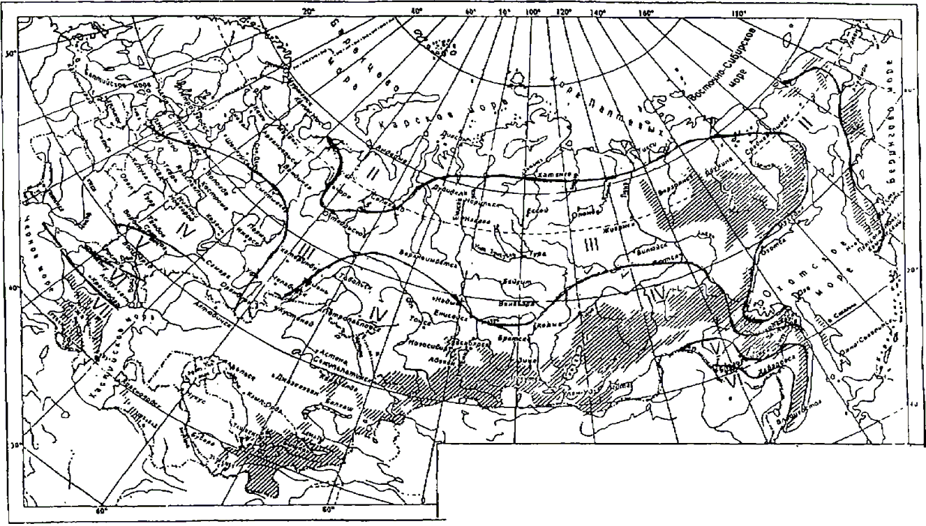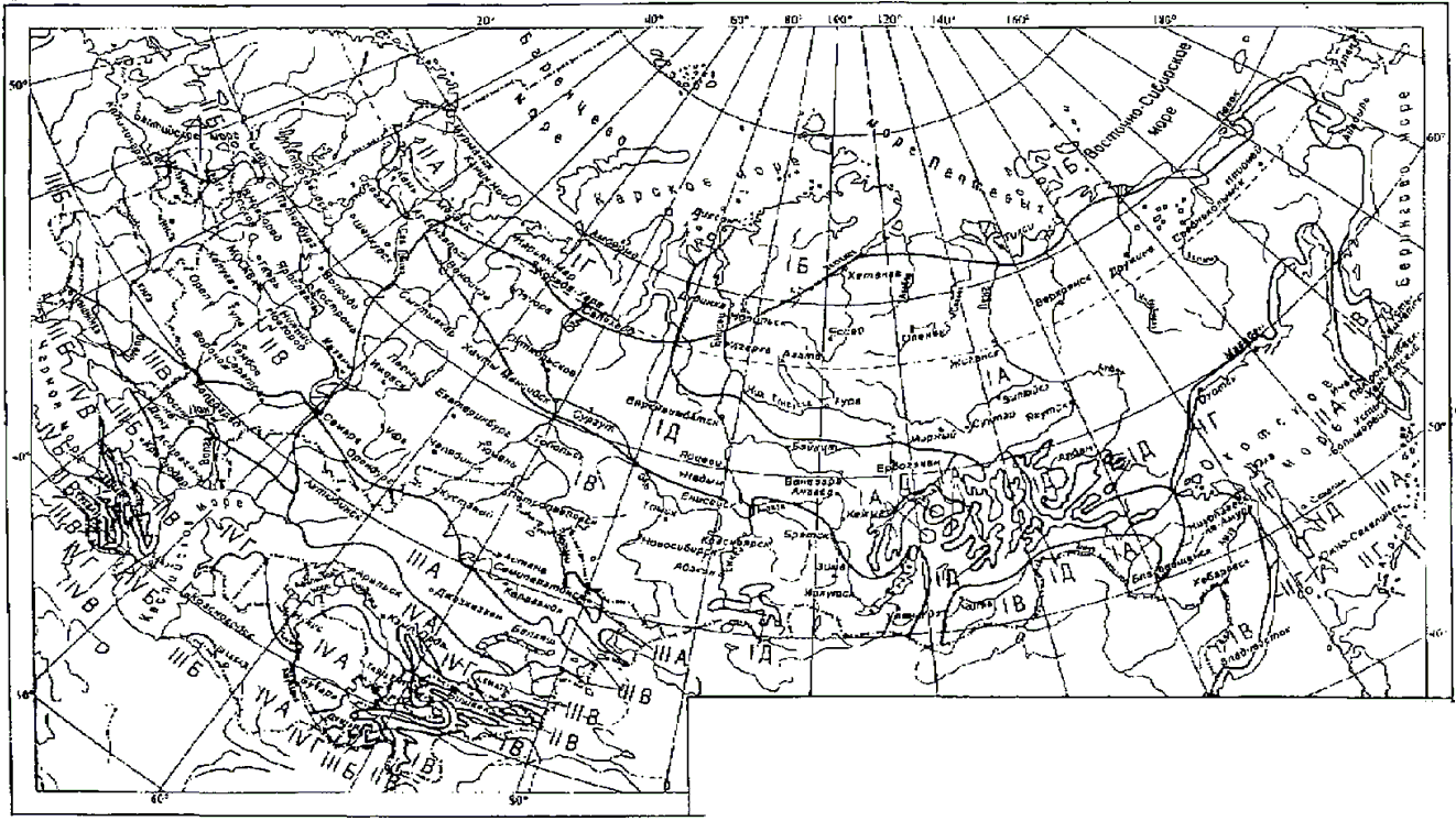 Рисунок А.1 - Схематическая карта климатического районирования территории Российской Федерации для строительства