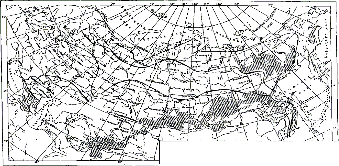 Рисунок А.2 - Схематическая карта районирования северной строительно-климатической зоны Российской Федерации