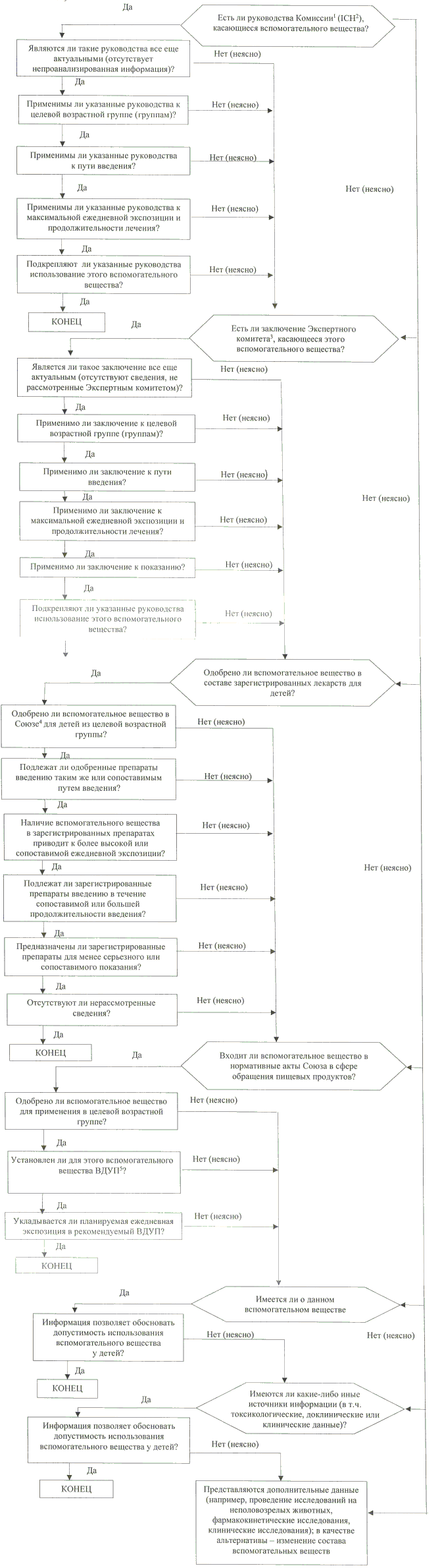 92. При выполнении алгоритма оценки профиля безопасности каждого вспомогательного вещества в лекарственной форме для детей, приведенного на рисунке, и формировании общего заключения о необходимости (отсутствии необходимости) представления дополнительных данных следует использовать следующие источники информации (в порядке убывания их значимости):