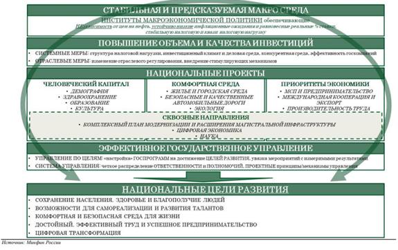 Достижению этой цели содействует постепенная нормализация бюджетной политики и реализуемые структурные изменения: как в структуре доходов - структурный маневр в налоговой системе по сбалансированному снижению прямых налогов на труд предприятий МСП; так и в структуре расходов - стратегическая концентрация финансовых ресурсов бюджетов публичной власти на достижении национальных целей развития - как в рамках национальных проектов и мер по реализации Посланий Президента Федеральному Собранию, так и других мероприятий госпрограмм.
