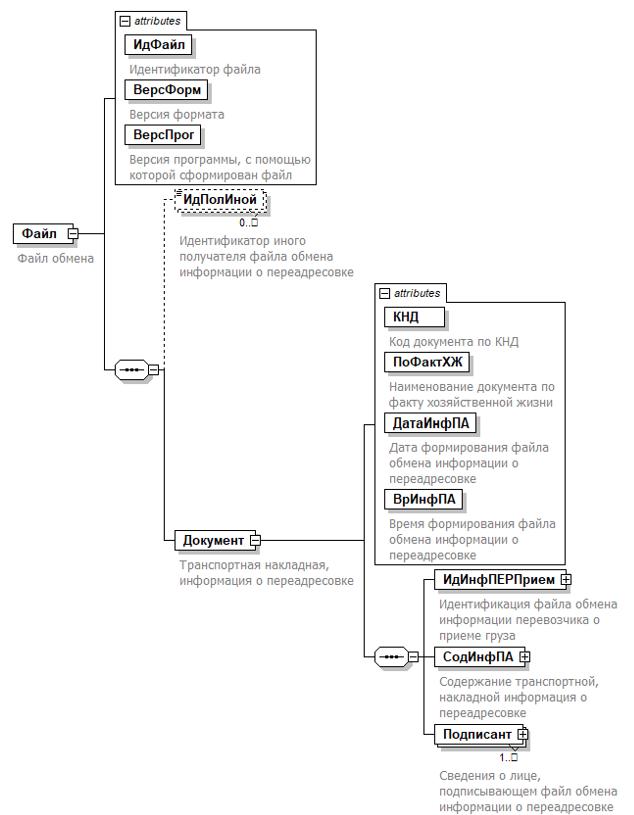 файл обмена информации о переадресовке, состоящей из сведений об изменении конечного пункта доставки груза и (или) сведений о новом грузополучателе. Файл обмена подписывается усиленной квалифицированной электронной подписью перевозчика;