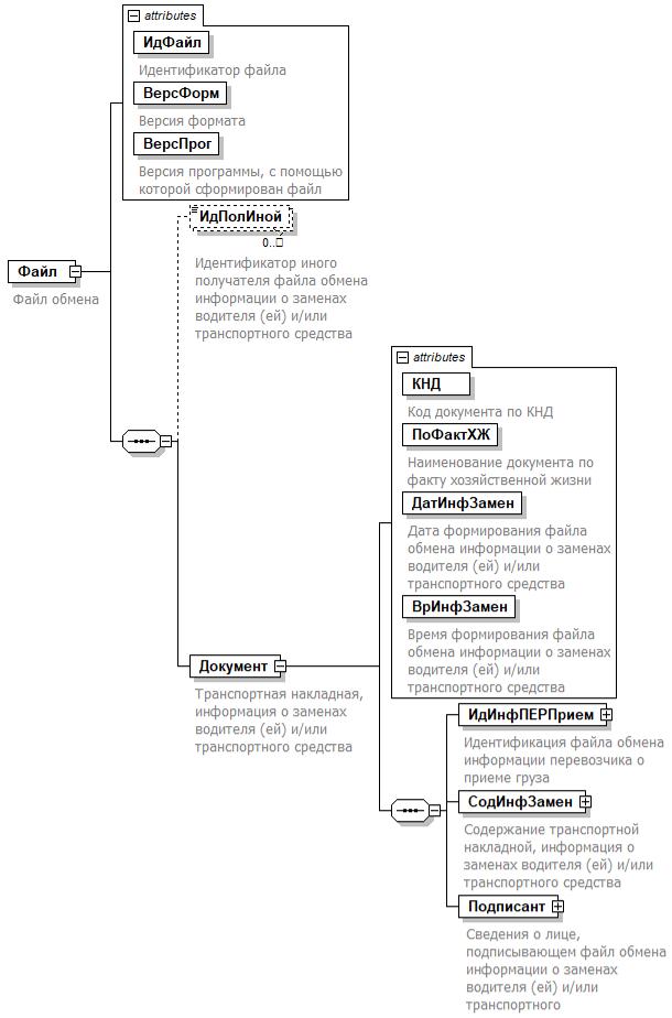 файл обмена информации о заменах водителя (водителей) и (или) транспортного средства, состоящей из сведений транспортного средства и (или) водителя (водителей) при перевозке груза. Файл обмена подписывается усиленной квалифицированной электронной подписью перевозчика;