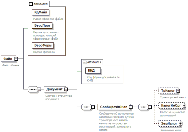 Сообщение об исчисленных налоговым органом суммах транспортного налога, налога на имущество организаций, земельного налога (СообщИсчНОНал)