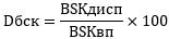 | где: Dбск - доля взрослых пациентов с болезнями системы кровообращения, выявленными впервые при профилактических медицинских осмотрах и диспансеризации за период, от общего числа взрослых пациентов с болезнями системы кровообращения с впервые в жизни установленным диагнозом за период; BSKдисп - число взрослых пациентов с болезнями системы кровообращения, выявленными впервые при профилактических медицинских осмотрах и диспансеризации за период; BSKвп - общее число взрослых пациентов с болезнями системы кровообращения с впервые в жизни установленным диагнозом за период. | ||||