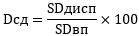| где: Dсд - доля взрослых пациентов с установленным диагнозом сахарный диабет, выявленным впервые при профилактических медицинских осмотрах и диспансеризации за период, от общего числа взрослых пациентов с впервые в жизни установленным диагнозом сахарный диабет за период; SDдисп - число взрослых пациентов с установленным диагнозом сахарный диабет, выявленным впервые при профилактических медицинских осмотрах и диспансеризации за период; SDвп - общее число взрослых пациентов с впервые в жизни установленным диагнозом сахарный диабет за период. | ||||