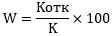 | где: W - доля женщин, отказавшихся от искусственного прерывания беременности, от числа женщин, прошедших доабортное консультирование за период; Kотк - число женщин, отказавшихся от искусственного прерывания беременности; K - общее число женщин, прошедших доабортное консультирование за период. | ||||