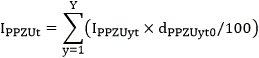 Индекс цен на ППЗУ () отчетного месяца к предыдущему по видам экономической деятельности субъекта Российской Федерации, федерального округа, Российской Федерации и в целом по субъекту Российской Федерации, федеральному округу и Российской Федерации рассчитывается как суммарный индекс цен по статьям ППЗУ: