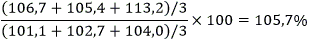 за январь - 107,2 x 100,9 /100 = 108,2%,
