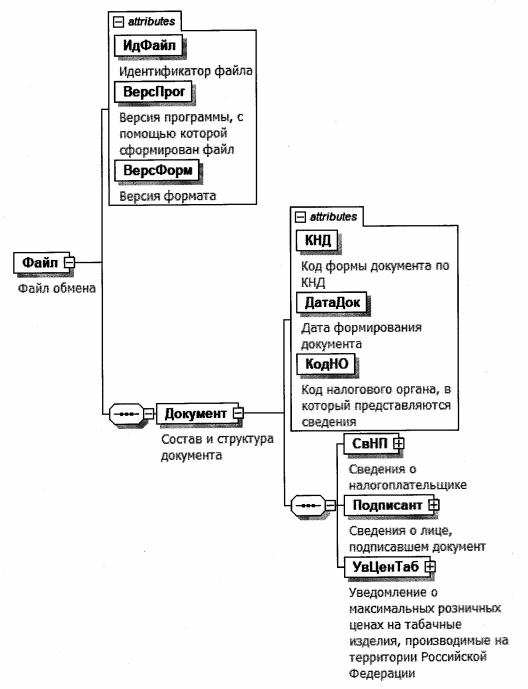 XML схема файла обмена приводится отдельным файлом и размещается на сайте Федеральной налоговой службы.