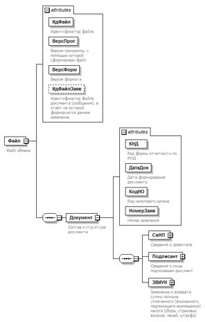 1. Настоящий формат описывает требования к XML файлам (далее - файл обмена) передачи в налоговые органы заявления о возврате суммы излишне уплаченного (взысканного, подлежащего возмещению) налога (сбора, страховых взносов, пеней, штрафа) в электронной форме.