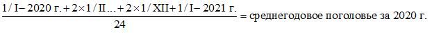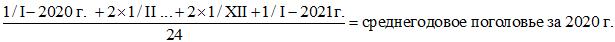 Среднегодовое поголовье рассчитывается из 24 дат (на начало и конец каждого месяца), как среднее хронологическое: