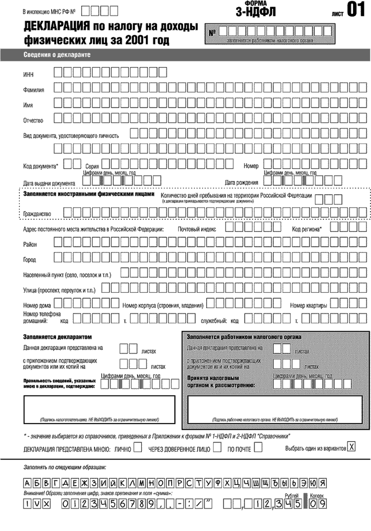 ПО ЗАПОЛНЕНИЮ ДЕКЛАРАЦИЙ ПО НАЛОГУ НА ДОХОДЫ ФИЗИЧЕСКИХ ЛИЦ ЗА 2001 ГОД
