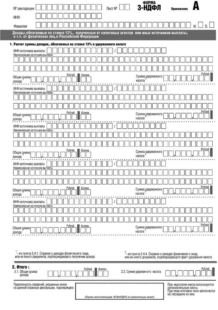 3.3. Приложение А "Доходы, облагаемые по ставке 13%, полученные от налоговых агентов или иных источников выплаты, в т.ч. от физических лиц, в Российской Федерации"