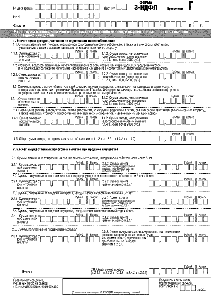 3.6. Приложение Г "Расчет сумм доходов, частично не подлежащих налогообложению, и имущественных налоговых вычетов при продаже имущества"