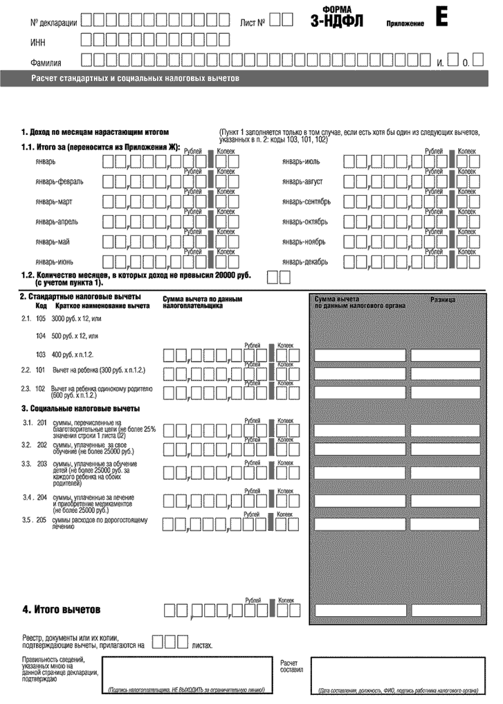 3.8. Приложение Е "Расчет стандартных и социальных налоговых вычетов"