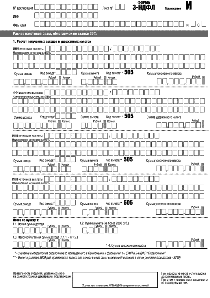 В данном Приложении указываются доходы, облагаемые налогом по ставке 35%", полученные в виде: