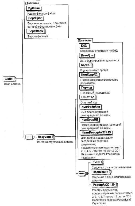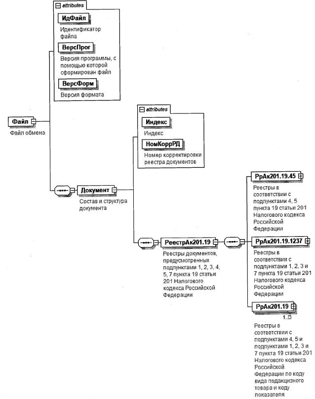 | Реестры документов, предусмотренных подпунктами 1, 2, 3, 4, 5, 7 пункта 19 статьи 201 Налогового кодекса Российской Федерации | РеестрАк201.19 | С | О | Состав элемента представлен в таблице 5.3 |