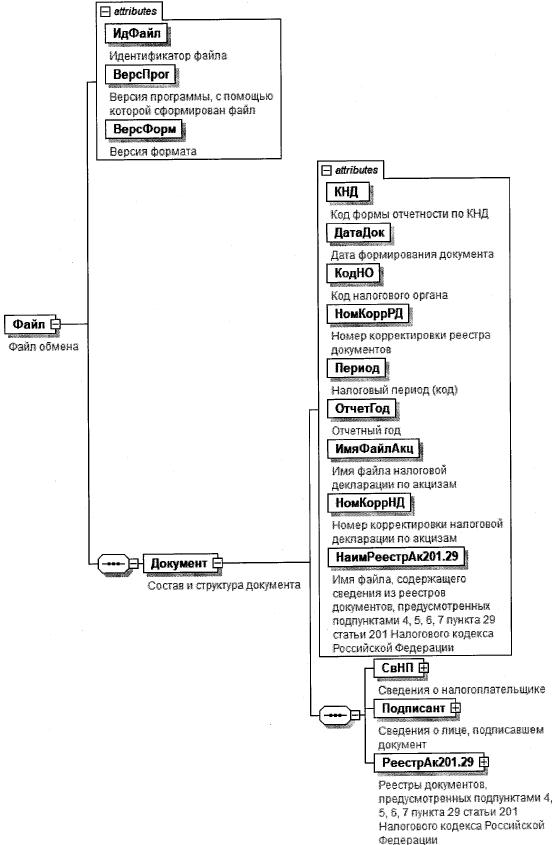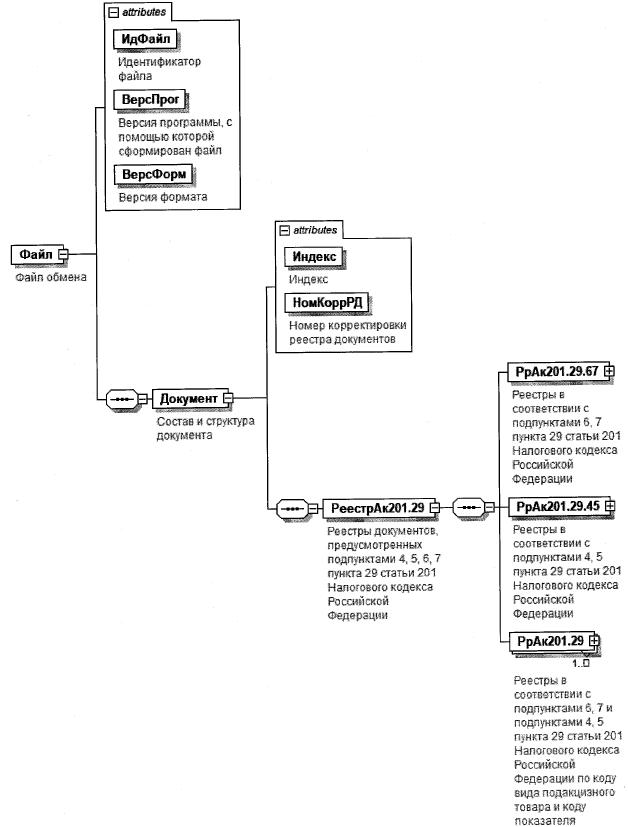 | Реестры документов, предусмотренных подпунктами 4, 5, 6, 7 пункта 29 статьи 201 Налогового кодекса Российской Федерации | РеестрАк201.29 | С | О | Состав элемента представлен в таблице 3.9 |
